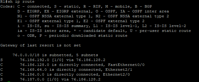 만약 라우터에 직접 연결된 네트워크(Connected Network)라면 테이블에 있겠지만 위와 같은 경우 130.16.64.0/19의 경우에는 테이블에 없을 것이다. 따라서 이 네트워크를 static으로 등록을 해주도록 할 것이다.