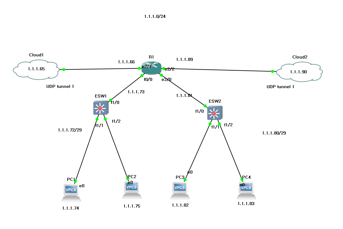 우선 공통 NI를 1.1.1.0/24로 하였다. 위와 같은 환경 6개를 직선으로 연결하게 되면 총 17개의 네트워크가 필요하다.