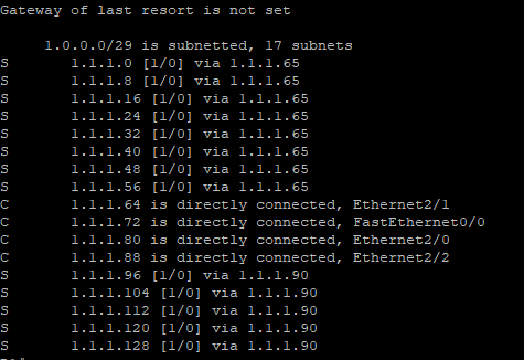 따라서 1.1.1.0/24를 17개 이상으로 나누기 위해서 prefix 29개로 하여 서브넷 하면 다음과 같이 네트워크를 구할 수 있다.