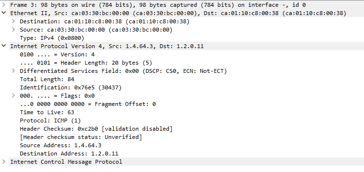 패킷들의 ip를 잘 보게 되면 pc에서 R3로 요청을 보낼 때 와 R3에서 R1으로 요청을 보낼 때의 IP Src가 다른 것을 볼 수 있다. 마찬가지로 응답 패킷의 Des 주소또한 달라진다.