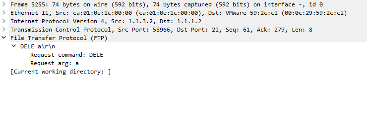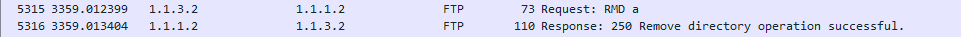 요청 패킷을 보게되면 Request Commend 에서 DELE라는 명령어가 있고, Request arg에서 해당 디렉터리인 a가 있는것을 볼 수 있다.