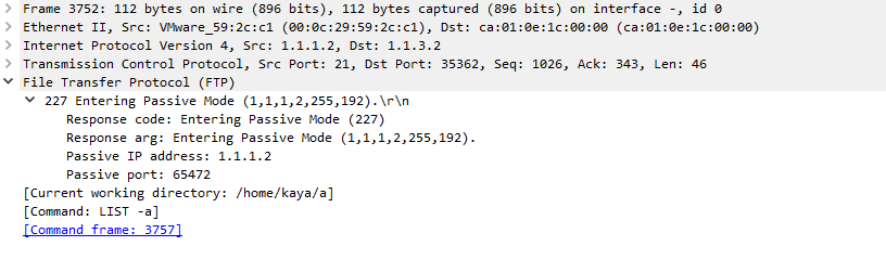 여기서 1,1,1,2는 IP를 의미하고 255와 192는 패시브포트인 65472를 의미한다.