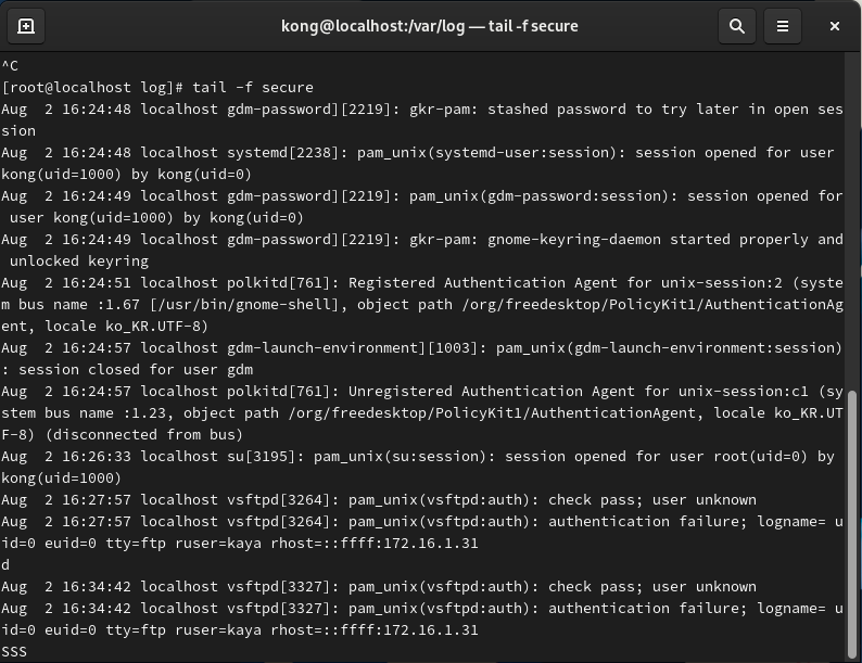 /var/log/secure : 실패한 로그인 로그