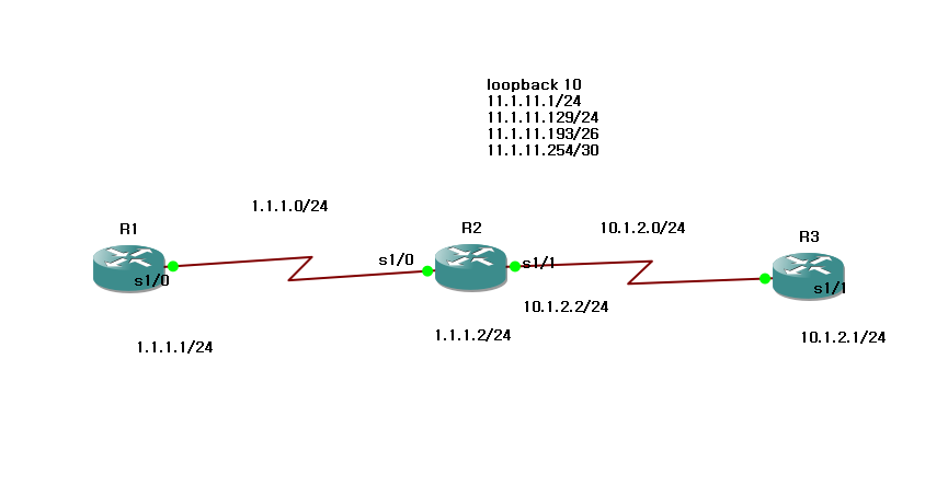 R2에서 R1으로 11.1.11.1/24 정보만 보이지 않도록 함.
