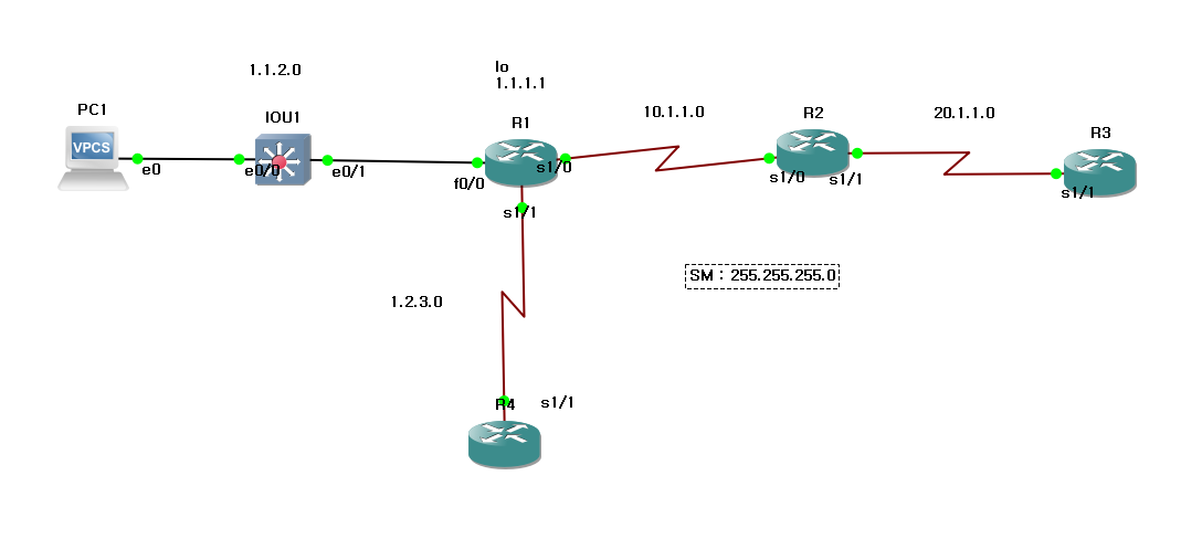 위의 랩에서 1.1.1.0과 1.1.2.0의경우 경로가 R1까지 일치한다. 따라서 Menual-Summary를 통해 라우팅 경로를 축약하도록 할 수 있다.