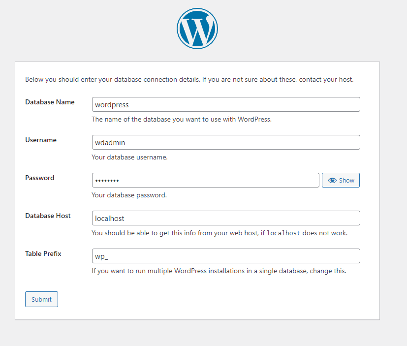 create database wordpress;