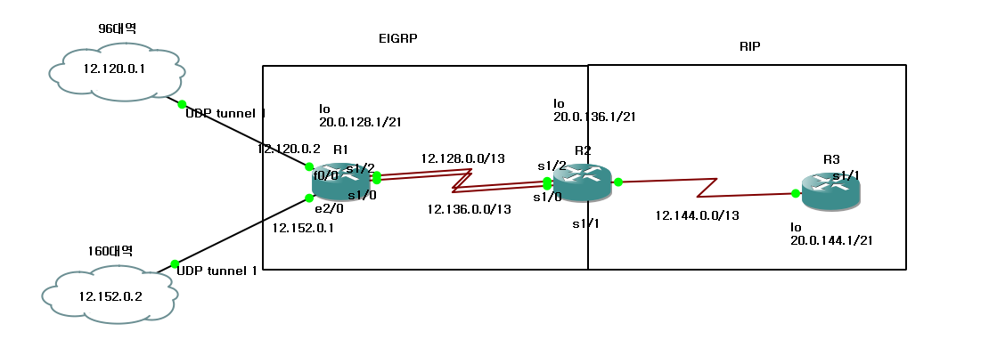 R2는 경계라우터로 RIP/EIGRP/Connected Redistribute