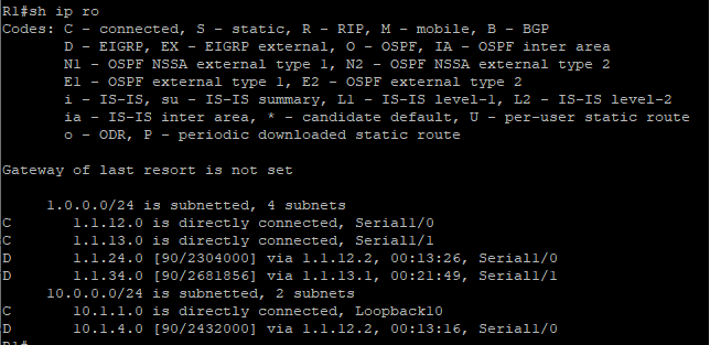 D 1.1.12.0 [90/2681856] via 1.1.24.1, 00:09:29, Serial1/1