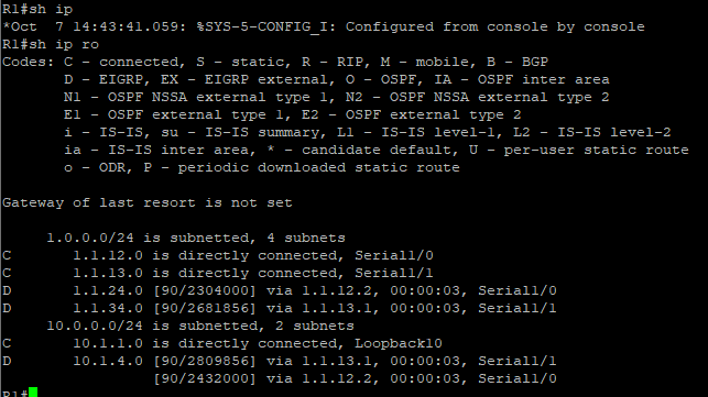 D 10.1.4.0 [90/2041856] via 1.1.24.2, 00:11:39, Serial1/1
