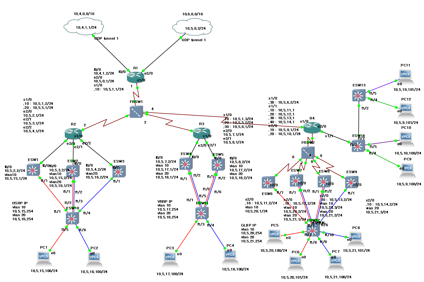 - R1에서 10.4.0.0/10.6.0.0대역으로는 EIGRP 100 으로 광고 및 IP Summary(10.5.0.0/16)사용(이외 네트워크 미사용)