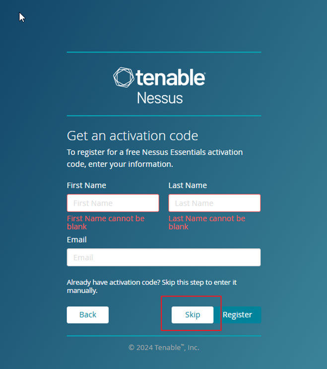 8. 다시 nessus 설정 페이지로 돌아가서 발행한 코드 입력
