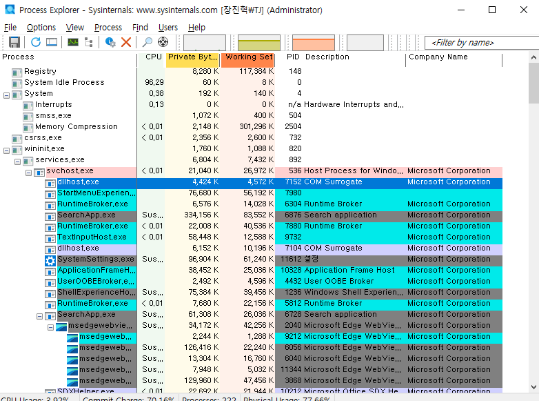 : 동작 시켰을 때의 상태값을 분석- 프로세스 모니터링 --> process exploer